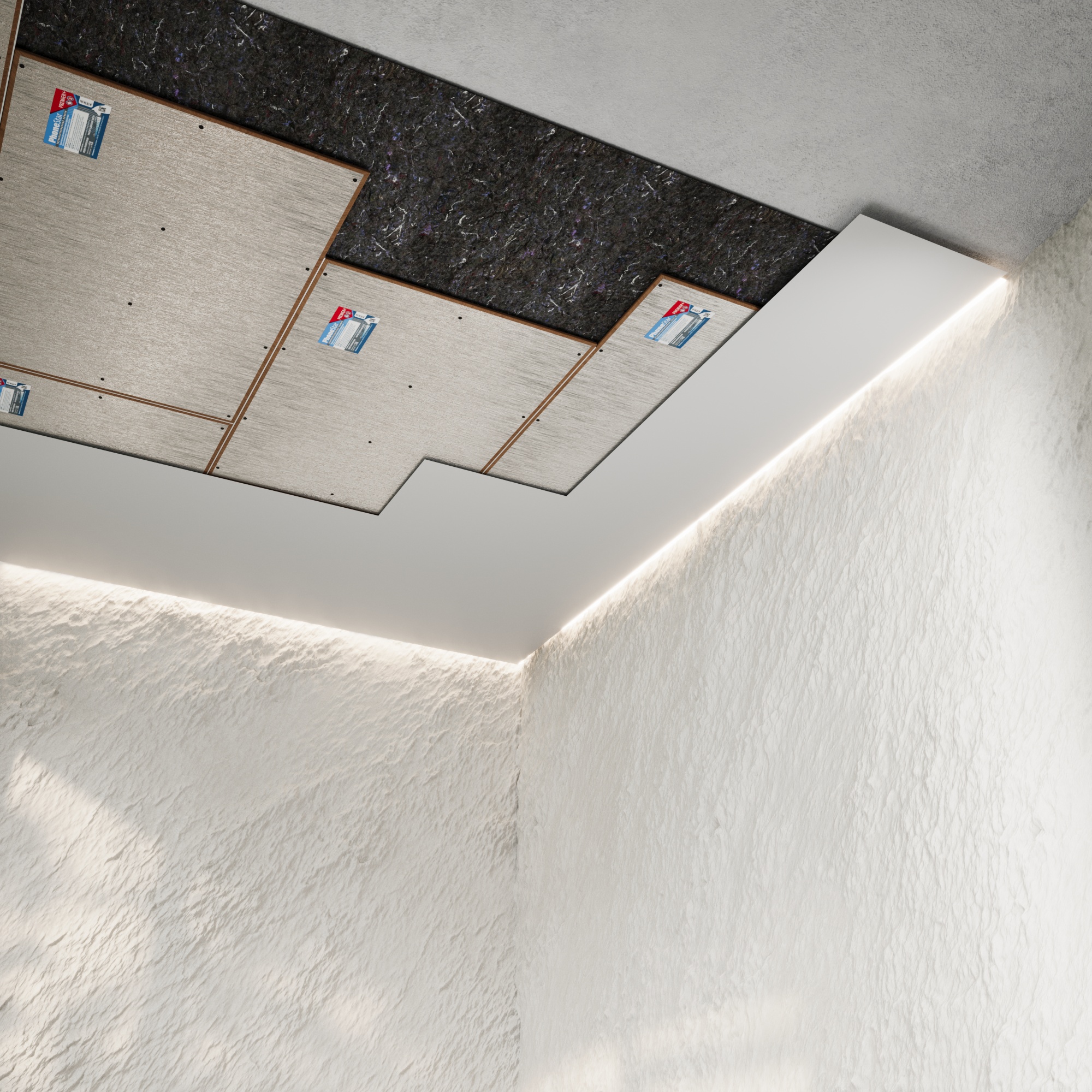 Уникальная, тонкая, звукоизоляционная система «ПРЕМЬЕР» монтируется на перекрытие потолка.