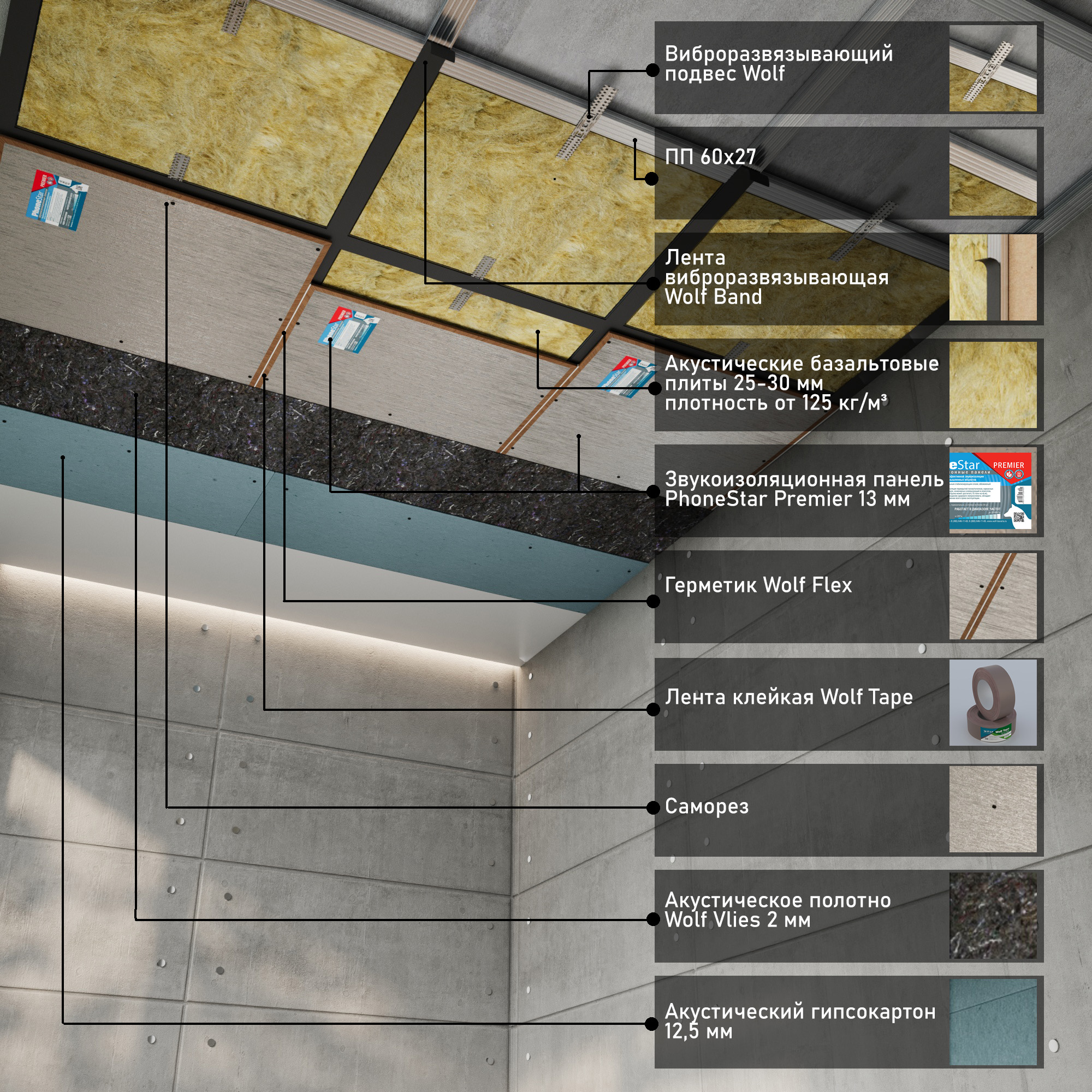 Главным элементом системы является тонкая, но тяжелая панель PhoneStar Premier толщиной 13 мм, предупреждающая распространение воздушного и структурного шума. Не имеет аналогов по совокупности: минимальная толщина и максимальная защита.